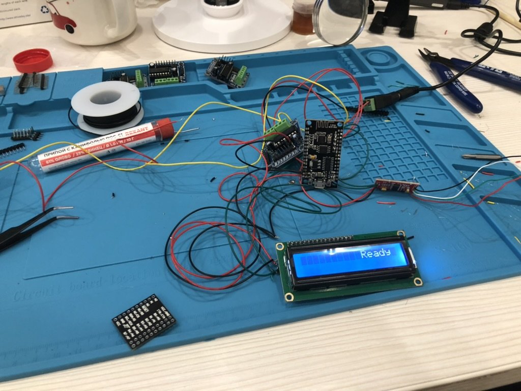 Сборку начал без корпуса, что в корне оказалось не верно, в итоге собрав на времянке, разобрал, начал разрабатывать корпус. Посмотрел по готовы работам корпуса, и решил заказать резку, корпус пока еще не вырезан. На фото можно увидеть макет корпуса миксера и макет корпуса под платы - в резке около 2.5 стоит из фанеры и орг. стекла