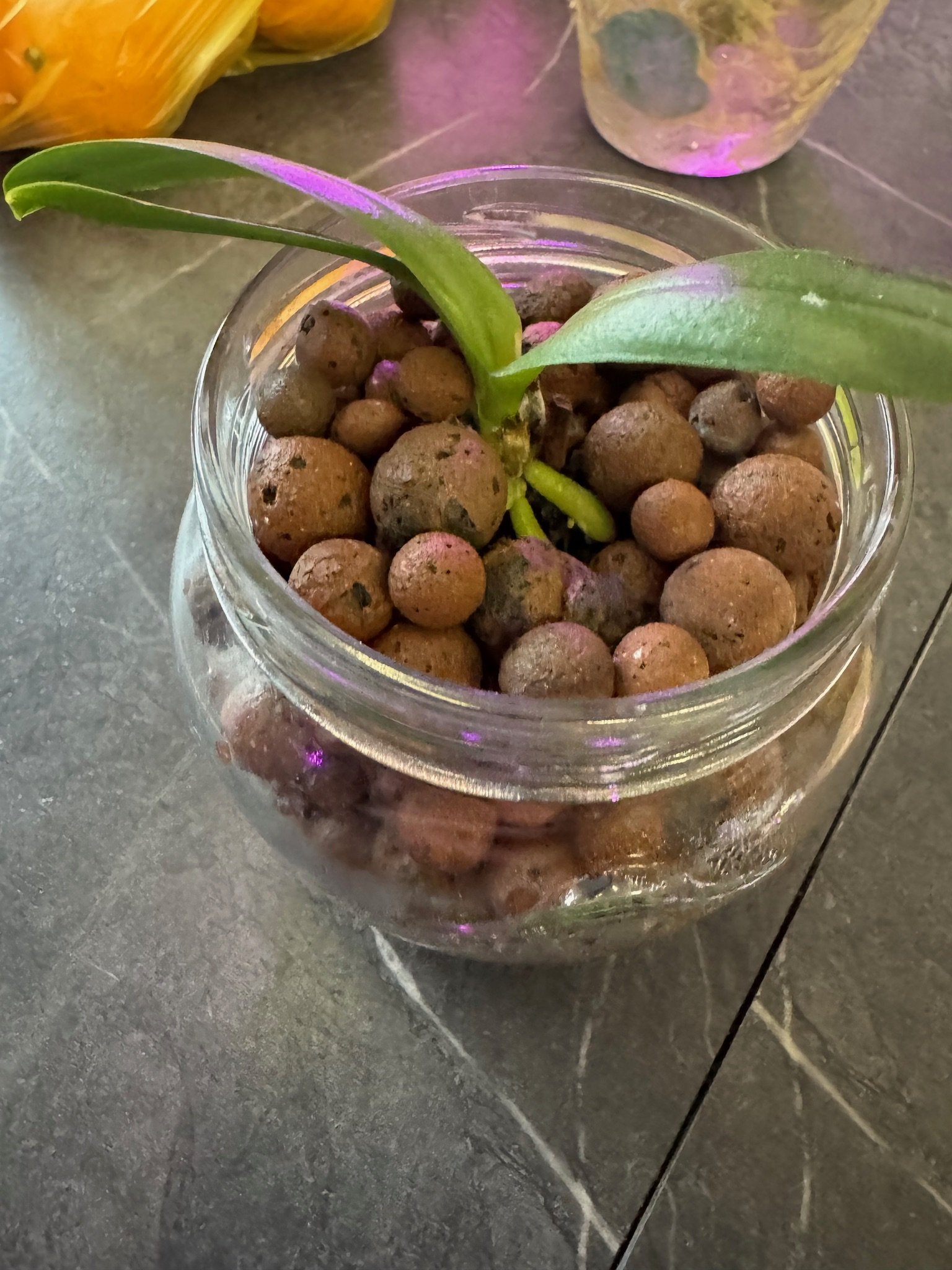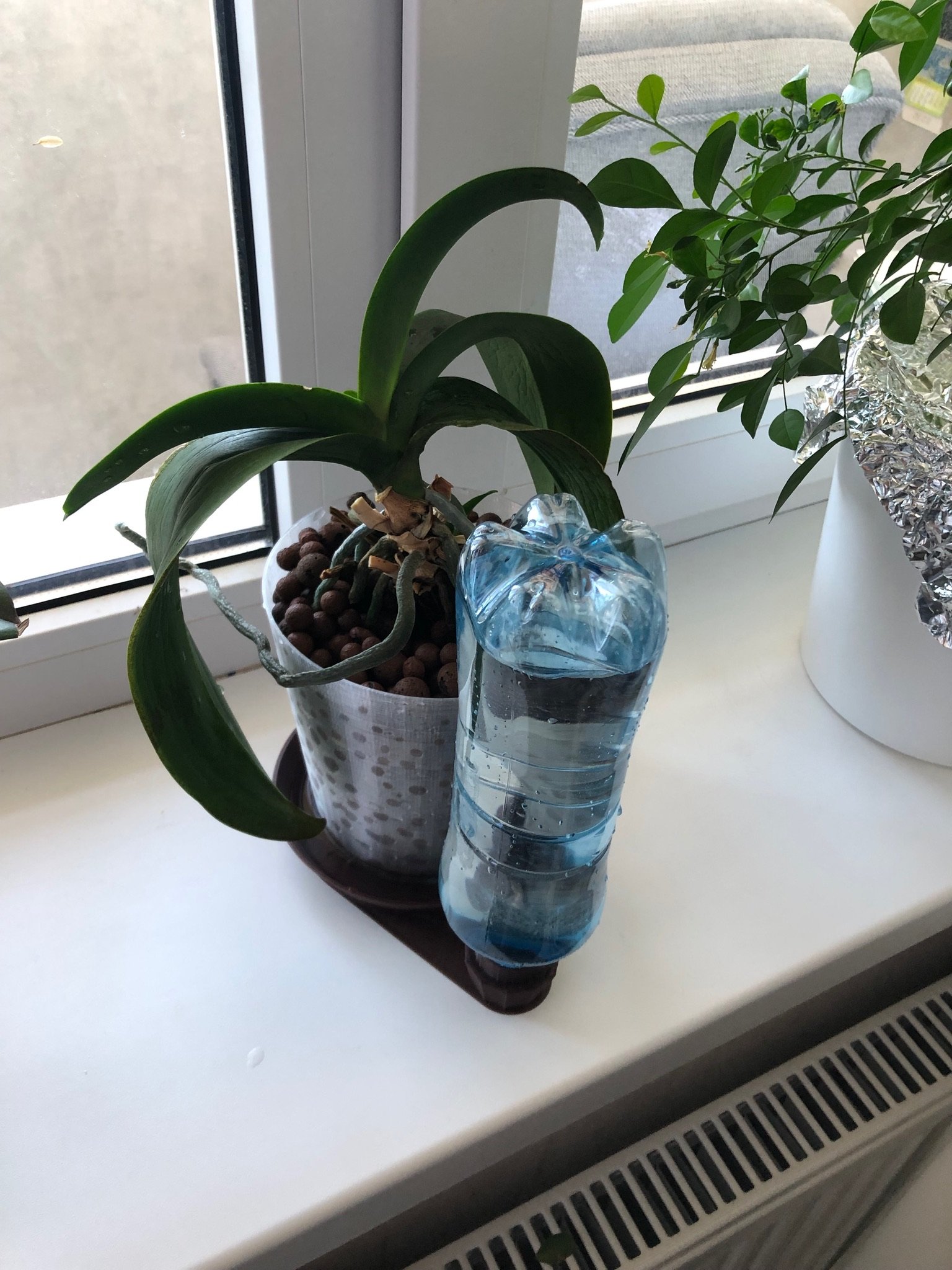 Орхидея на гидропонике в керамзите - подпор или тонкий слой Орхидея отлично живет на гидропонике!ЕС от 0.7 до 1Тонкий слой на блюдце с бутылкой - раз в 1-2м набираю новый раствор.